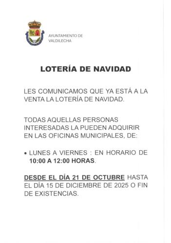 A partir del día 21 de octubre, de 10 a 12 horas, en las Oficinas Municipales, ya está disponible la Lotería de Navidad